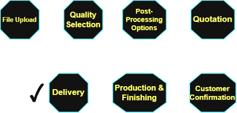 Clients can upload their files online 24/7 and conveniently receive finished parts by postal delivery within Germany, enabling a seamless and efficient production workflow from concept to delivery.